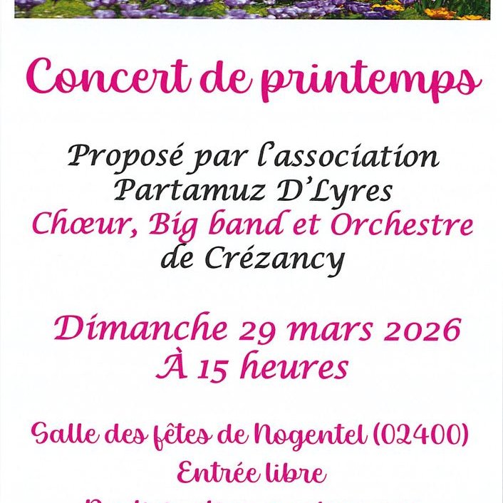 Nous allons accueillir le 29 mars 2026 à la salle des fêtes de Nogentel à 15H un concert proposé (…)