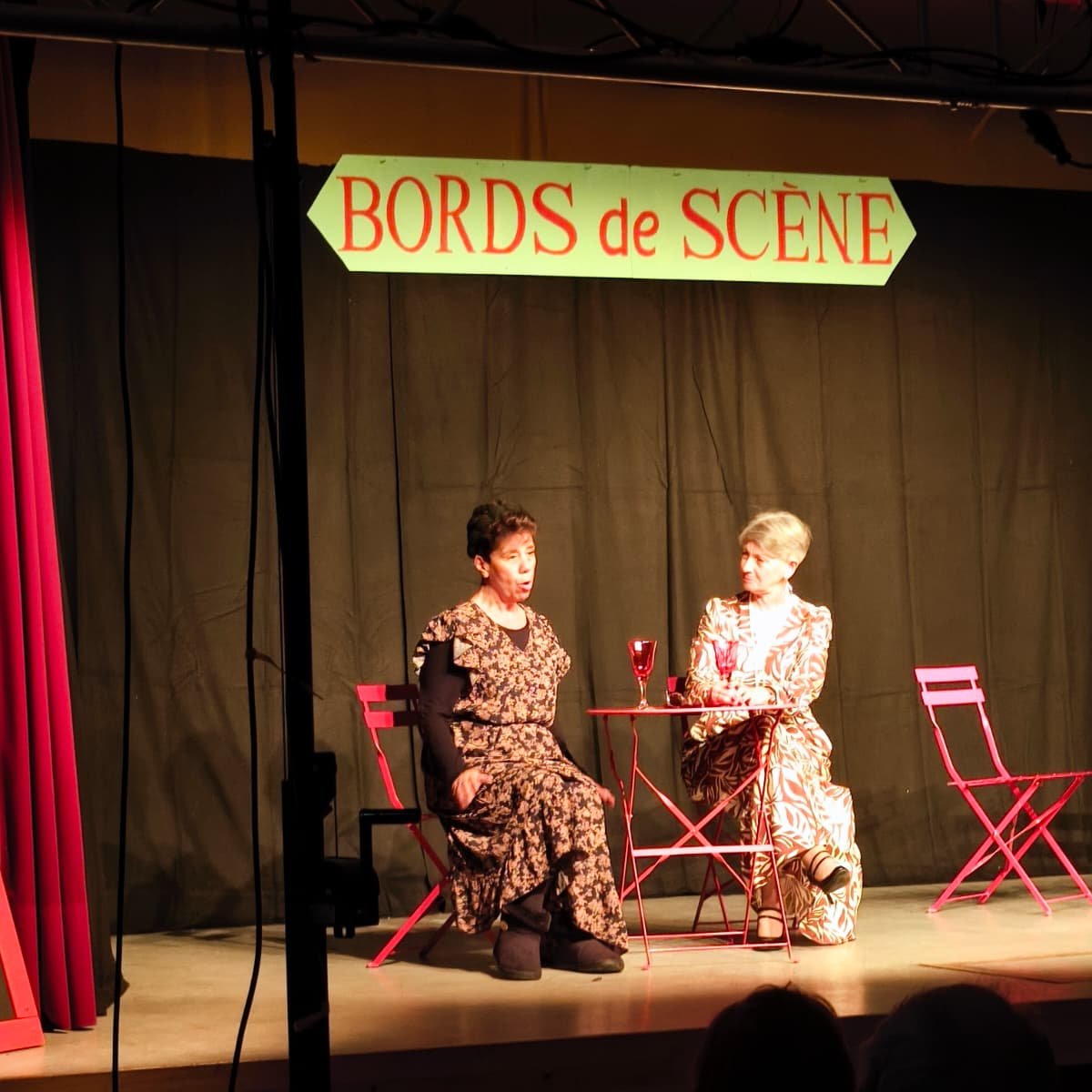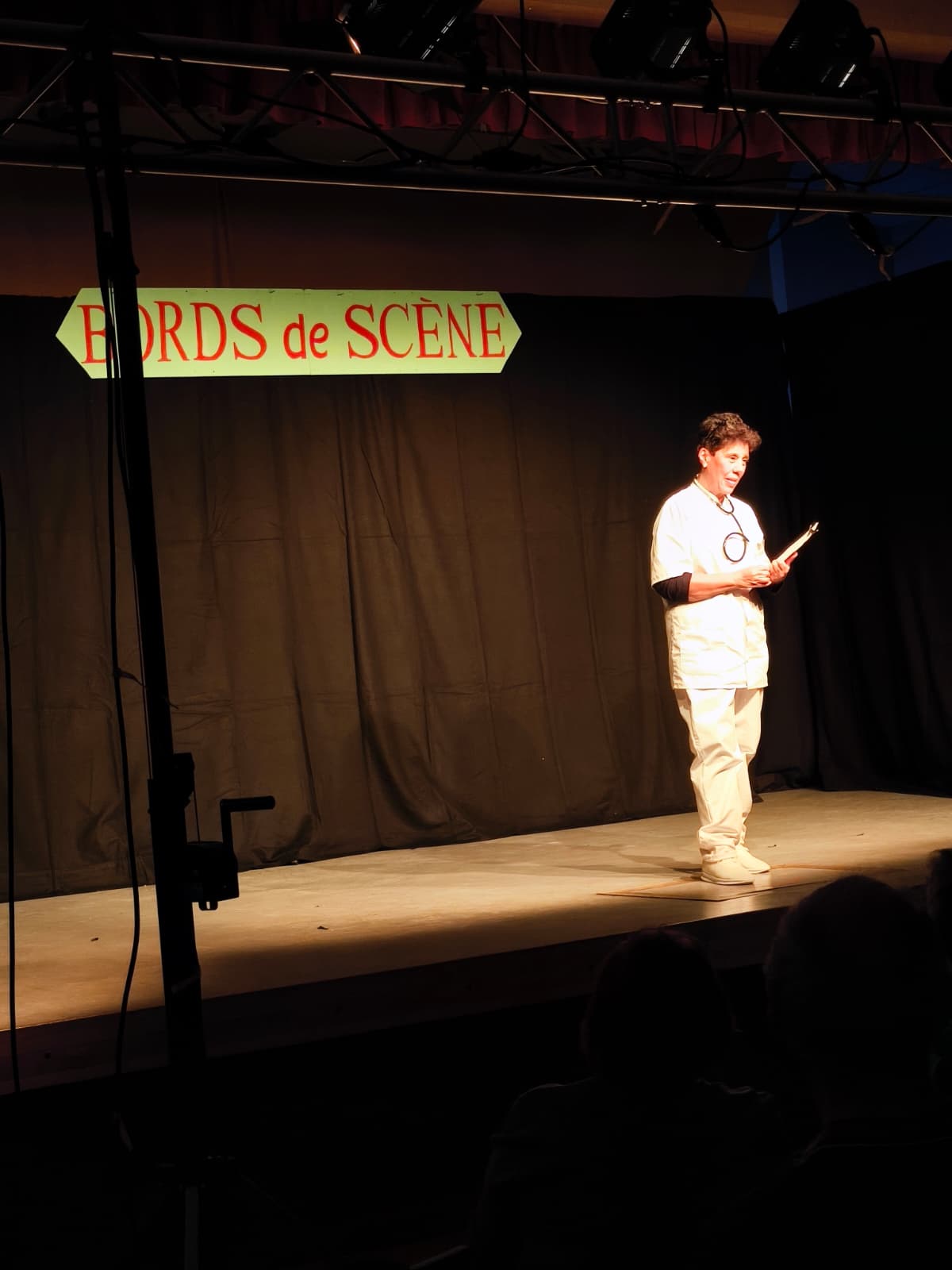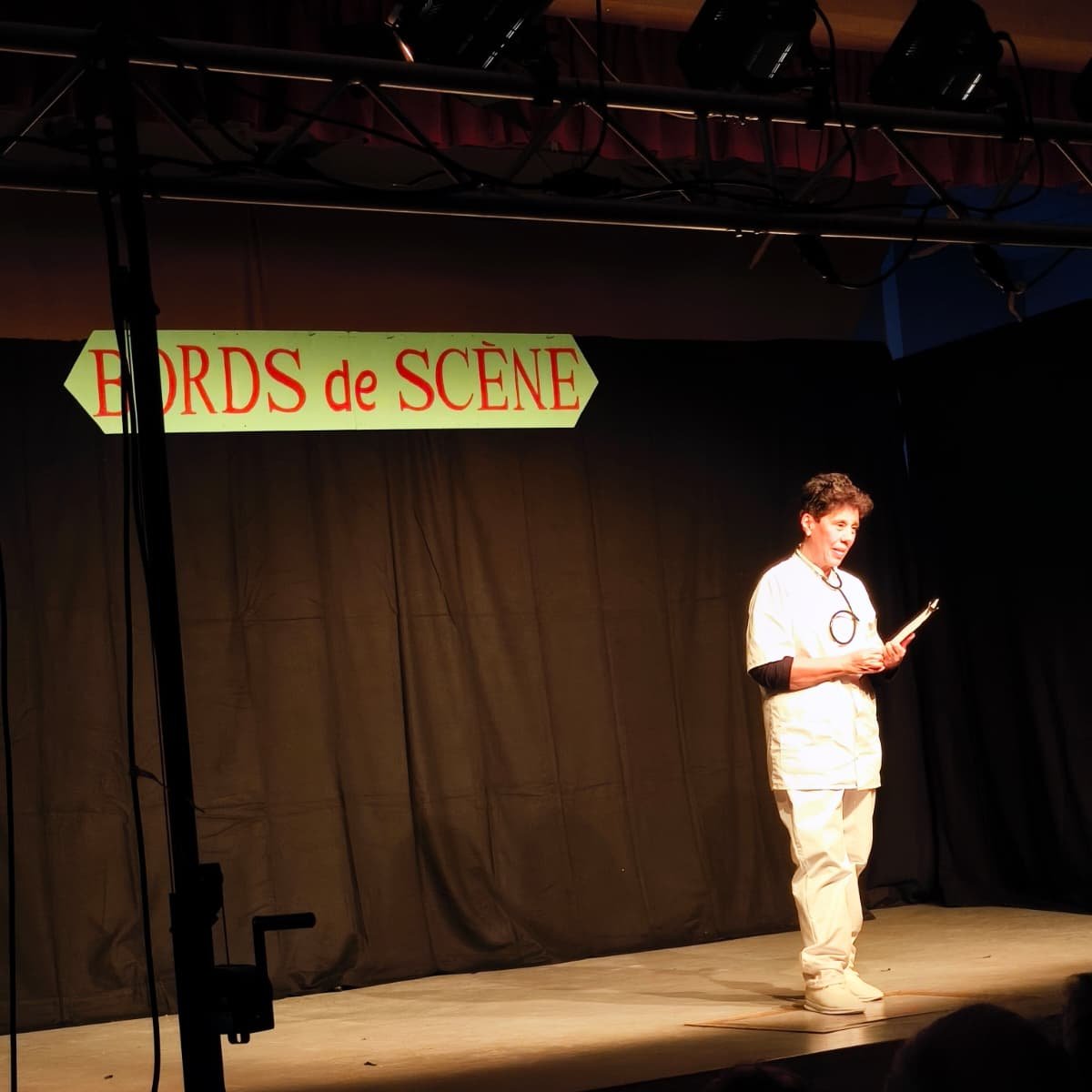 C’est environ 50 personnes qui sont venues applaudir les comédiens de la "Compagnie Pourquoi Pas"ce dimanche . Les situations burlesques de "BORDS de SCENE" ont déclenchées des rires et des applaudissements. Bravo aux comédiennes et comédien et à Jean Pierre Rozen, le méteur en scène.